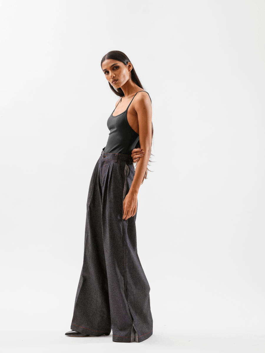 These flared pants are an ode to retro vibes and modern sensibilities. Designed with a flattering high waist and dramatic flared hems, they add effortless flair to any outfit. They are perfect for creating bold, versatile looks.