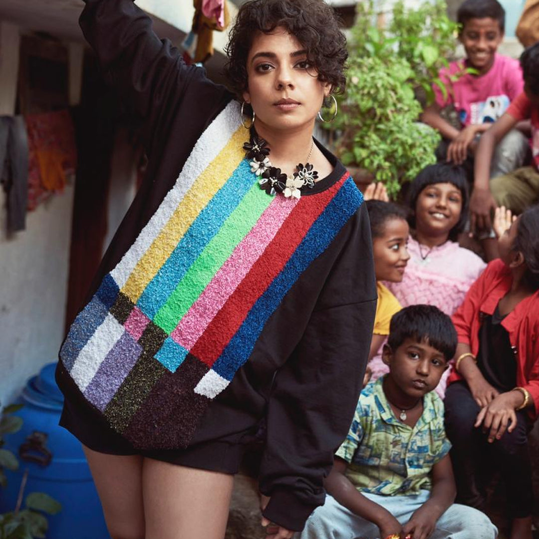 Made from 100% recycled cotton, delicately hand-embroidered with sock manufacturing waste.